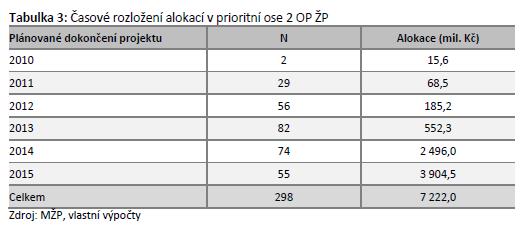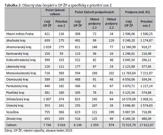 V rámci tohoto výzkumu se zaměřujeme na investice na Ostravsku v Moravskoslezském kraji. V tomto kraji byl realizován nejvyšší počet projektů v prioritní ose 2 (12,7 %) ze všech krajů České republiky. Co se týče finanční alokace v prioritní ose 2, pak z celkové sumy 17,6 mld. Kč investovaných v ČR, bylo celých 41,0 % investováno právě v Moravskoslezském kraji (pro další informace o alokacích viz tabulka č. 2).