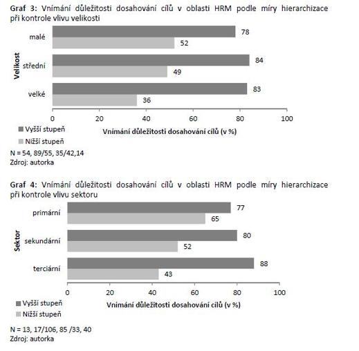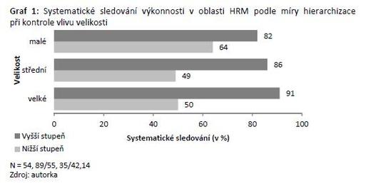 Data ukazují, že složitost a množství úrovní řízení vyvolává tlak na sledování výkonnosti v oblasti HRM, který narůstá s velikostí organizace a s posilováním významu lidského kapitálu. To, že je hierarchický způsob řízení charakteristický uplatňováním formalizovaných postupů, popisuje také Daft (2014) a souvislost narůstající s počtem zaměstnanců se jeví v zásadě logicky. U málo hierarchizovaných organizací (míra hierarchizace přitom souvisí s velikostí organizace), pak mohou funkce chybějícího personalisty či personálního útvaru přecházet na osobu vlastníka či manažera a nemusí být proto rozvinuty v takové míře, jak o tom referuje výzkum Václavkové a kol. (2007: 94), který na základě empirického šetření přijímá hypotézu o souvislosti velikosti organizace a existence specializovaného útvaru.