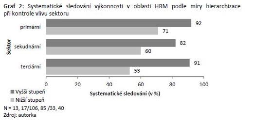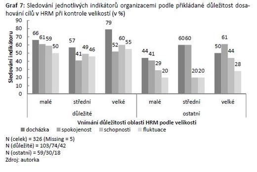 Přestože by bylo možné očekávat, že podniky zaměstnávající velké množství zaměstnanců, které jsou na řízení složitější, a podniky z terciární sféry, jejichž činnost více závisí na lidském kapitálu, by mohly vykazovat větší tlak na hodnocení výkonnosti v oblasti HRM, v obecné rovině nejsou na základě velikosti a odvětví mezi organizacemi rozdíly jak v míře systematického sledování, tak ani ve vnímání důležitosti.