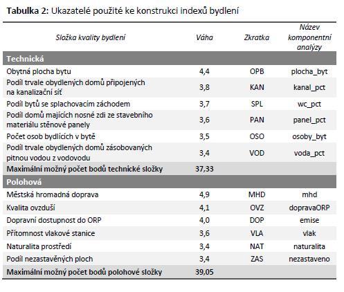 Jednotlivé ukazatele, které byly ke konstrukci indexů užity, jsou shrnuty v následující Tabulce 2.