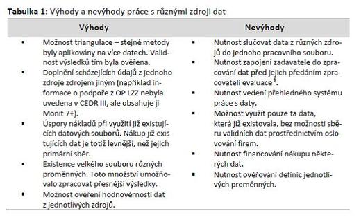 Pro zpracování této kontrafaktuální dopadové evaluace v rámci OP LZZ je zásadní existence rámcové smlouvy o poskytování statistických dat mezi Českým statistickým úřadem a Ministerstvem práce a sociálních věcí ČR. Obdobnou smlouvu mají i další ministerstva. Tyto smlouvy umožňují poskytnutí mikrodat řídícím orgánům příslušných programů. V případě OP LZZ pak řídící orgán zajišťoval anonymizaci dat.
